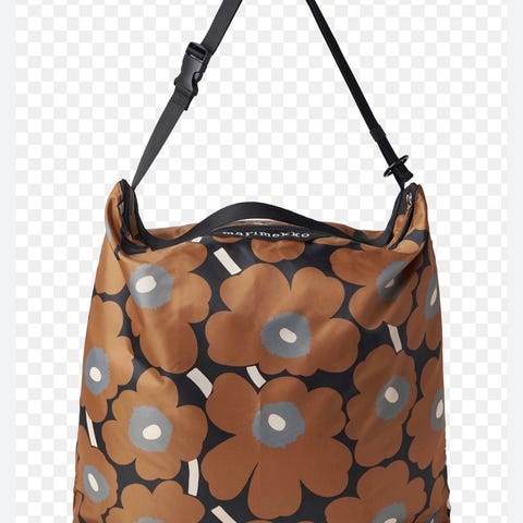 Nydelig veske fra marimekko med unikko mønster i svart, lilla og kakigrønn farge