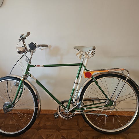 Prisen er satt med utgangspunkt i at denne kan deles opp og selges for ganske mye, og at dette er en sjeldent fin sykkel som det finnes veldig få av i brukbar stand. :)