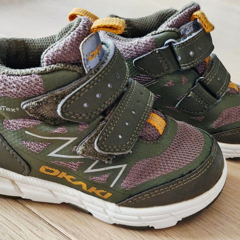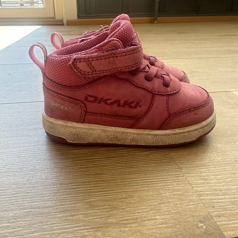 Overgangssko fra Okaki. Str 23. Synlig brukt, men fremdeles mye sko igjen.