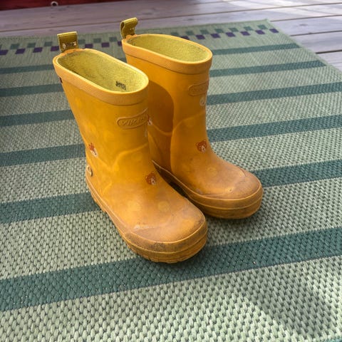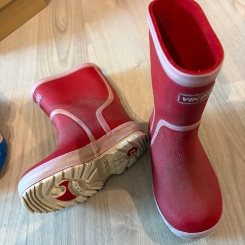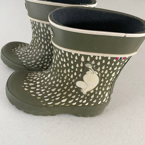 Viking gummistøvler for barn i størrelse 23 ☔️Støvlene er unisex og har grønn farge med mønster. Grovmønstret såle gir godt grep på vått underlag. Passer til bruk i regnvær, i barnehage og til lek ute når det er vått og gjørmete. Populære her i huset!