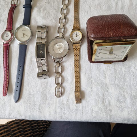 Selger et Looping, Sveitsisk reisevekkerur med klokke, temperaturmåler og barometer. Alarm 8 days. Klokken tikker og går og har fin «vekkelyd». Barometeret er jeg litt usikker på om det viser riktig. Ingen skader på de prismeslipte glassene. Etuiet er trukket i burgunderrødt lær. Lukkemekanismen virker også. Alt i alt et fint vintage samleobjekt.