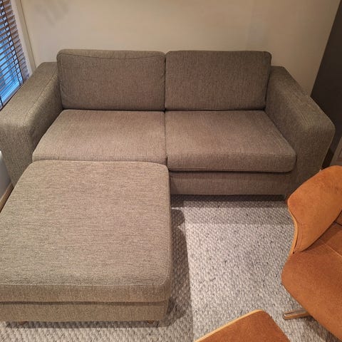 Cosy toseter combi (to hjørnemoduler) fra Bolia i "griege" , beige-grå tone. Ser lysere ut virkeligheten. Sokkel i eik. Mykt stoff i 100% Lin.