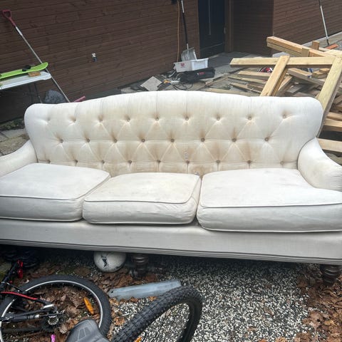 En en helt grei sofa gis bort . Trenger kanskje en vask eller rens . står på Hjalmar Bjørges vei , 1604 Fredrikstad
