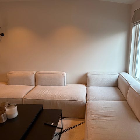 Flott buet/rund modulsofa med tilhørende bord selges rimelig. Sofaen består av i alt 3 moduler som settes sammen slik man ønsker. Alle 3 modulene samlet (som på bildene) utgjør en svært inkluderende/sosial sittegruppe. Sofaen er pent brukt, og svært enkel å rengjøre. Sofaen er trukket i fargen Silvertex-titanium, og har sorte stålben. Sofaen er en del av Nooa-serien, som er designet av Antti Kotilainen (finland).