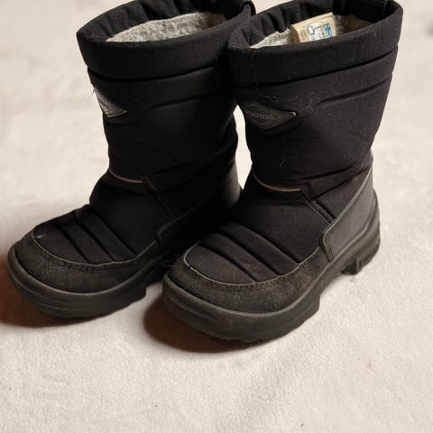 Kuoma vintersko for barn i størrelse 25, unisex. Skoene er svarte og har høy skaft som gir god dekning rundt ankelen. Robust yttersåle i gummi gir godt grep på glatt underlag. Passer til bruk i kaldt vær og vinterforhold for både gutter og jenter.
