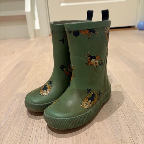 Viking gummistøvler til barn i størrelse 31. Unisex-modell i grønn farge med mønster. Støvlene har riflet yttersåle for bedre grep og glatt innside. Egnet til bruk i regn og vått vær, for lek ute og hverdagsbruk.