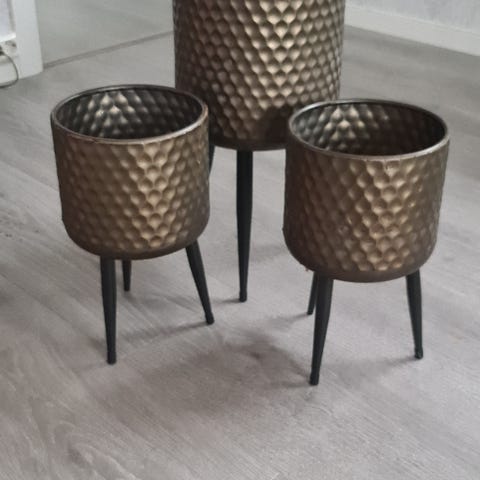 Pidestall til planter og annen pynt, tre platåer. Den kan legges helt sammen, eller justeres hvordan bena skal stå.