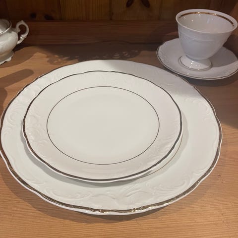Selger pent brukt service med gulldetaljer samlet til 350kr