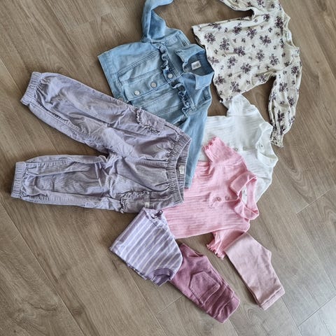 Pakke med genser i størrelse 98/104 og bukse i størrelse 98.