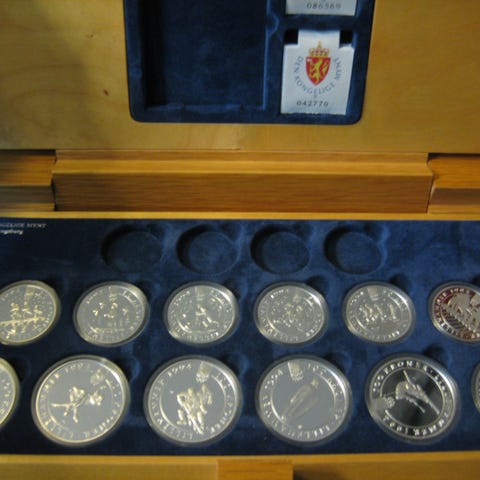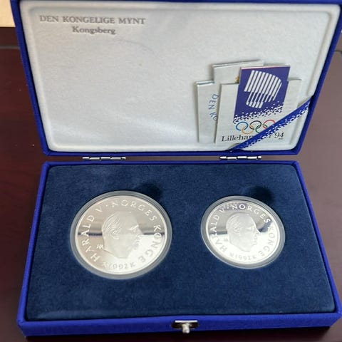 OL 1994, Lillehammer, myntsett, samlemynter, sølvmynt, Den Kongelige Mynt, Kongsberg, norsk historie, OL minner, gave, samlerobjekt