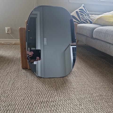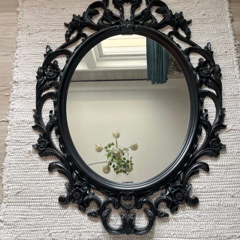 Ovalt vintage speil fra IKEA, minst 20 år gammelt. Fasett slipt. 69 cm langt, 40 cm bredt.