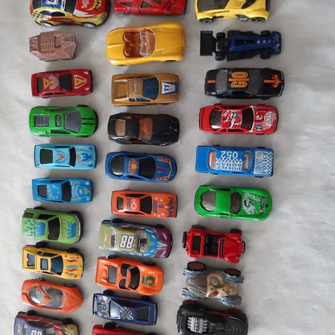 Miniature Car Collectors bilkoffert for lekebiler med plass til 42 små biler. Lukkes med metall-lås på toppen. 9 stk. Husky modellbiler av variende kvalitet følger med. Kjøper betaler frakt.