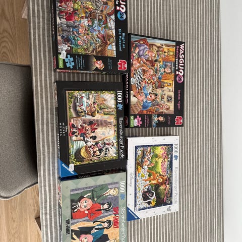 Selger massevis av puslespill fra flere forskjellige produsenter.