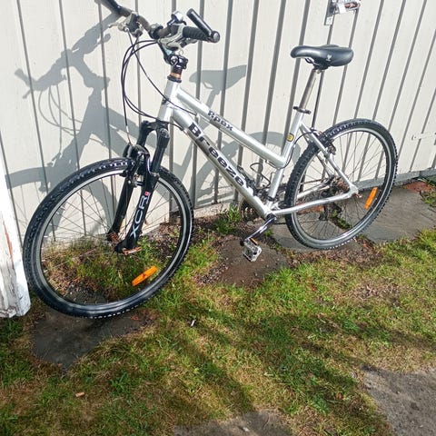 Solid terrengsykkel med klassisk Diamant-kvalitet. Den har lett aluminiumsramme, dempegaffel og 3x7 gir (Shimano)som gjør den godt egnet både til tur og pendling. Brede dekk gir god komfort og stabilitet på grus og asfalt. Sykkelen er i god stand og klar til bruk. Passer for deg som vil ha en rimelig og driftssikker sykkel til hverdagsbruk.