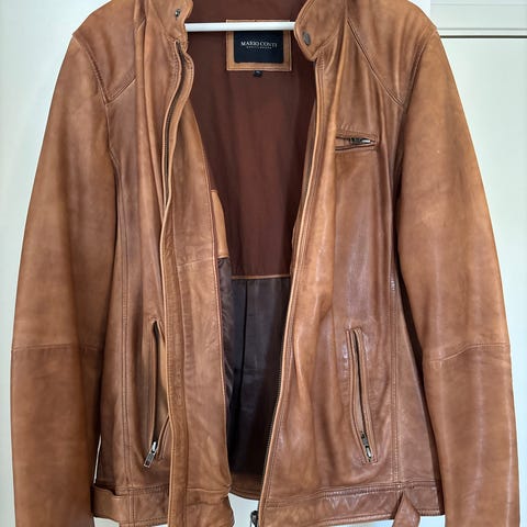 Tøff skinnjakke for herre selges. (Selger for venner) Brun farge. Pent brukt.