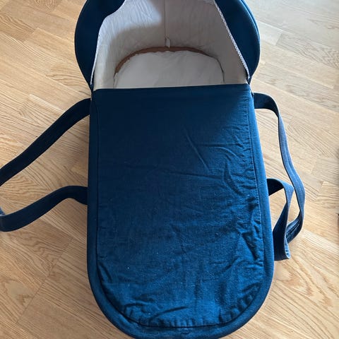 Yngri babybag i tekstil. Babybagen har polstret innside og bærehåndtak på sidene. Egnet for transport og soving for spedbarn. Kan brukes i barnevogn eller innendørs etter behov, avhengig av kompatibilitet med aktuell vognmodell.