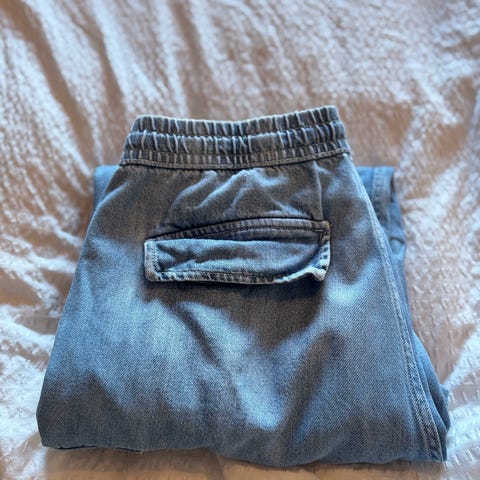 Nike bukser for herre i størrelse M. Buksene er grå og laget i nylon. De har elastisk linning med snøring og flere lommer langs bena. Passer til hverdagsbruk og fritidsaktiviteter.