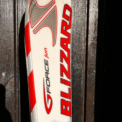 Head alpinski med integrerte bindinger i blå farge. Bindingene er montert på skinne og kan justeres til ulike skostørrelser innenfor anbefalt område angitt på bindingene. Egnet til bruk i alpinbakke på preparerte løyper, utmerket som et par ski til barn i 6-12 års alderen.