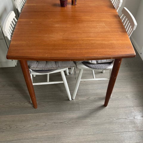 Selger et flott vintage spisebord i teak fra Myhres Møbelindustri (Hønefoss).