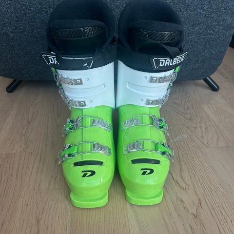 Dalbello Gaia 4 alpinstøvler i hvit og lyseblå farge. Modellen har fire justerbare spenner med mikromjustering og powerstrap øverst for bedre støtte rundt leggen. Støvlene har gummisåle med markert mønster for bedre feste ved gange. Passer til alpint bruk. Ytterskall i plast med polstret innerdel for komfort og støtte. Egnet som barne- eller juniorstøvel avhengig av størrelse.