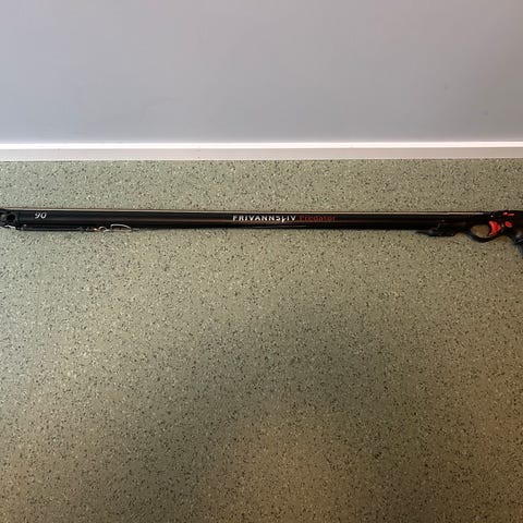 Harpun, blybelte (ikke medtatt kniven). Gummien på strikken er morken og må byttes ut.