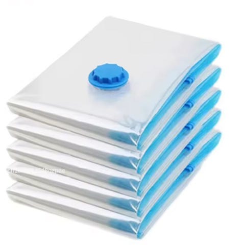 Praktiske glidelåsposer til oppbevaring av klesskift - selges for 370,- per sett (inneholder fem poser).