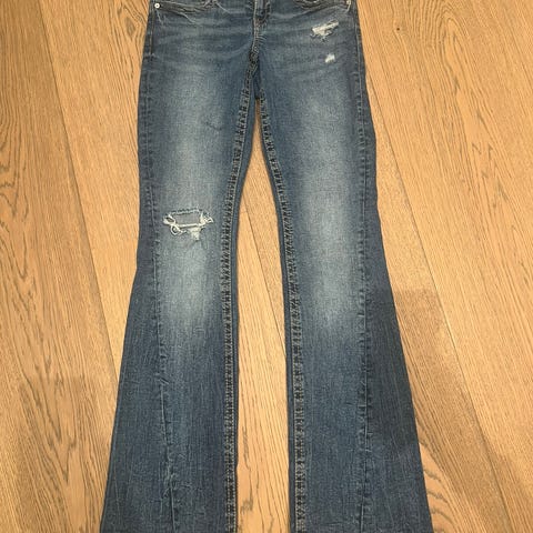 Mørke blå jeans fra Gina tricot i størrelse 36. Buksene er sydd opp så de passer folk fra 157-163cm ca.