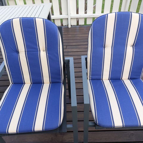 Putesett til hagestoler i stripete mønster med lyse nyanser. (Vaskbare trekk med glidelås)