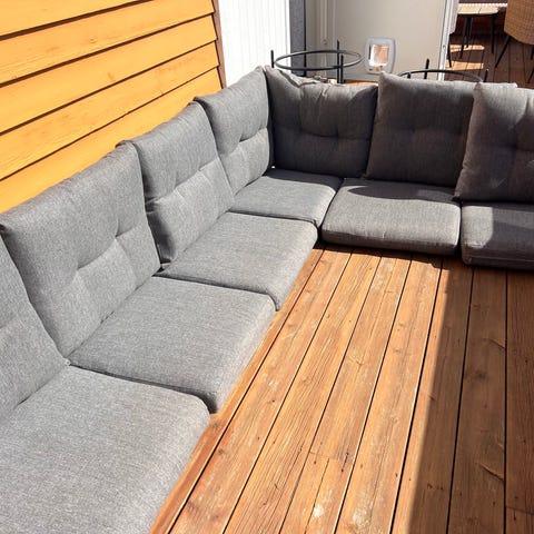 Settet består av 9 rygg/seteputer samt to små puter. Passer til regulerbare stoler. Putene har snorer for feste til stol. Egnet for bruk på terrasse, balkong eller i hage på utemøbler der man ønsker ekstra komfort.