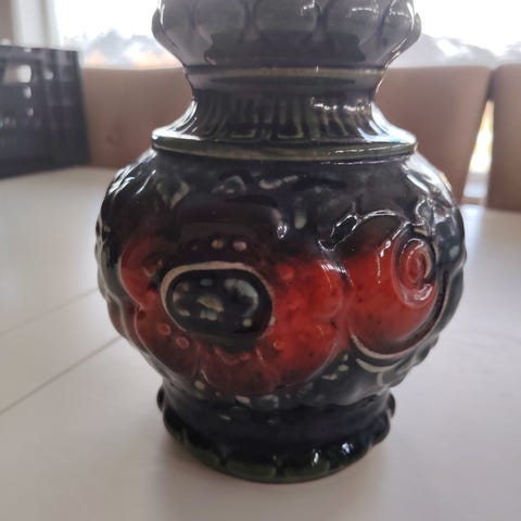 Retro W. Germany keramikkskål med hank, svart flerfarget glasur