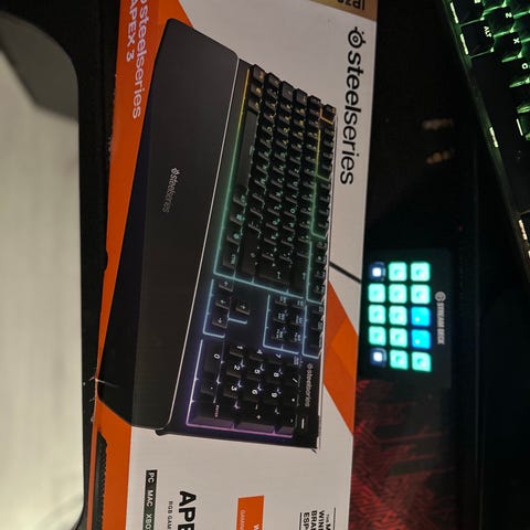 SteelSeries Apex 3 TKL tastatur med kablet tilkobling. TKL‑utforming (tenkeyless) uten numerisk tastatur, som gir mer plass på skrivebordet. Tastaturet er i svart farge og kobles til via USB‑kabel. Egnet til bruk med stasjonær eller bærbar PC der man ønsker et kompakt tastaturoppsett.