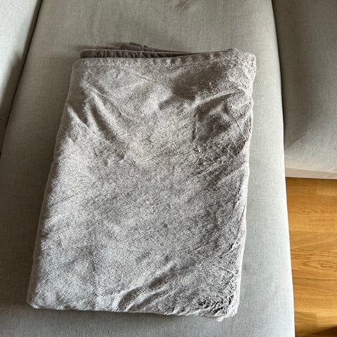 Herlig, mykt og luksuriøst varmeteppe, som varmer godt på kjølige dager. Aldri vært i bruk eller tatt ut av emballasjen. Helt som ny. Størrelse 60 x 30 cm. Grå farge. 3 temperaturinnstillinger. Skrur seg av automatisk etter 90 min. Kan vaskes i maskinen. «Fleecy soft».