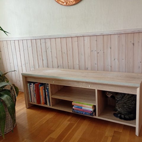 Benken har gulnet noe med årene. Ellers er begge i gid stand og lite brukt.