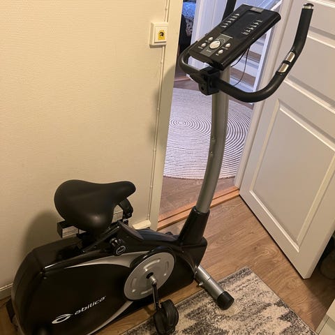 Monark ergometersykkel i hvit utførelse. Sykkelen har justerbart sete og styre, samt display med enkel oversikt over treningsdata. Egnet til innendørstrening og kondisjonstrening hjemme eller i treningsrom.