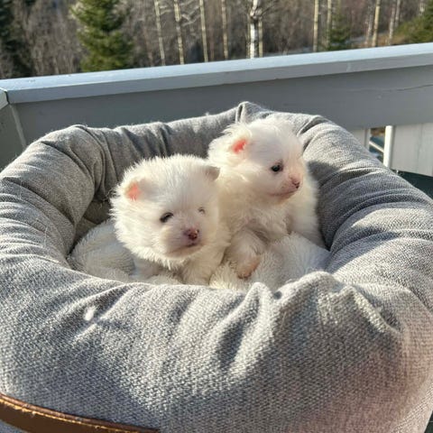 Sunne å friske renrasede pomeranian valper født 01.03.26 og leter etter sitt for alltid hjem. Det vil bli lagt ut nye bilder av valpene etterhvert og de vil bli sosialisert med andre hunder, barn og gårdsdyr. Sunn mor og far men kommer uten stamtavle derav pris. Her er to gutter.