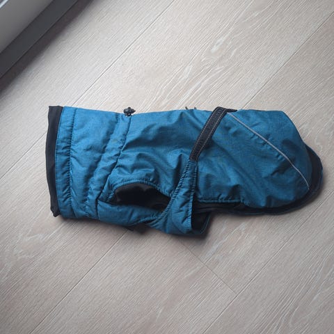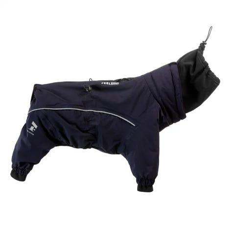 Feel active vintertrekk i svart. Trekket er laget for å gi ekstra varme og beskyttelse i kaldt vær. Det har justerbare stropper og spenner for å feste, godt rundt hunden, samt en liten lomme med glidelås på ryggen. Passer til medium størrelse, vi har brukt den på en Cavalier King Charles Spaniel. Yttersiden er mørk og glatt, innsiden er mykere tekstil i mørk grå tone.