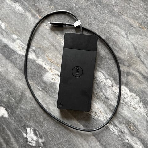 Dell D6000 universal dokkingstasjon USB-C med strømforsyning i svart.