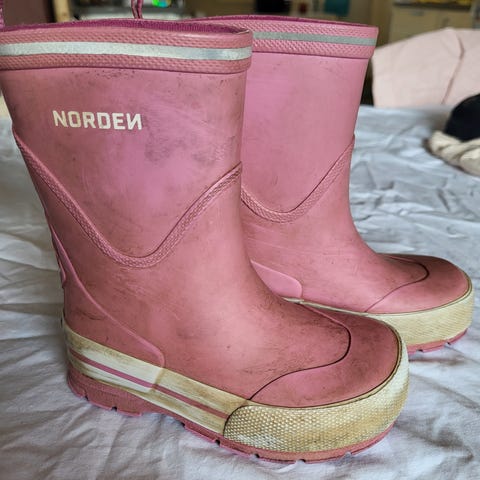 Norden gummistøvler str 25. brukt av 1 barn én sesong. Trenger en vask, men er ellers i fin stand.