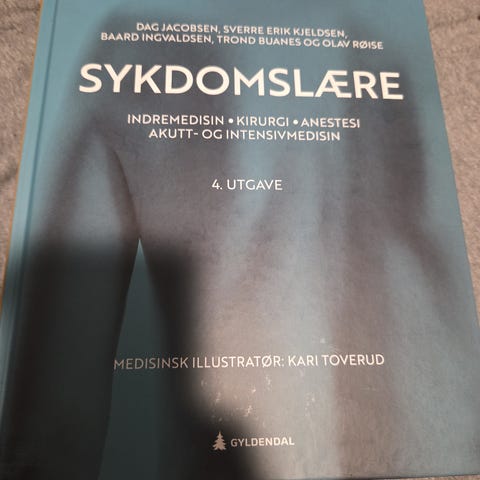 Selger boka Sykdomslære: indremedisin, kirurgi, anestesi, akutt- og intensivmedisin av D. Jacobsen, S. E. Kjeldsen, B. Ingvaldsen, T. Buanes og O. Røise. Boka er 4.utg. har noen bruksmerker/hakk i permen, ellers i god stand.
