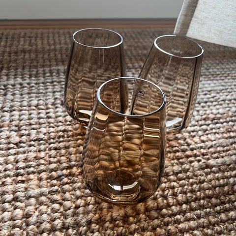 Krusene består av klare glassinnsatser i løse metallholdere med dekorativt mønster og hank. Egnet til varme drikker som kaffe, te eller gløgg. Leveres i original emballasje slik bildene viser.