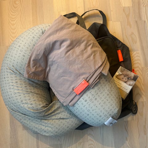 Gravidpute i U-form i blått trekk. Puten gir støtte langs hele kroppen og kan brukes under graviditet eller som støttepute ved hvile og søvn. Trekket ser ut til å være i mykt tekstilmateriale. Egnet til bruk i seng eller på sofa for ekstra komfort og avlastning.