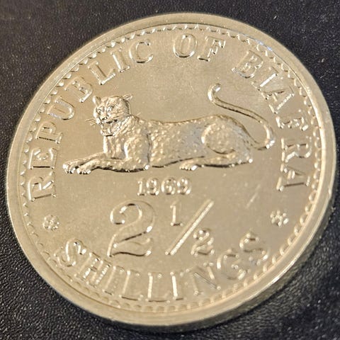 Biafra eksisterte kun i perioden 1967–1970, noe som gjør myntene fra denne staten ettertraktede blant samlere av både mynter og historie.