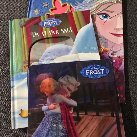 Illustrert fortelling fra Frost-universet med Anna, Elsa og Olaf. Boken har stive permer og fargerike tegninger på hver side.
