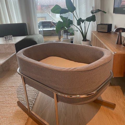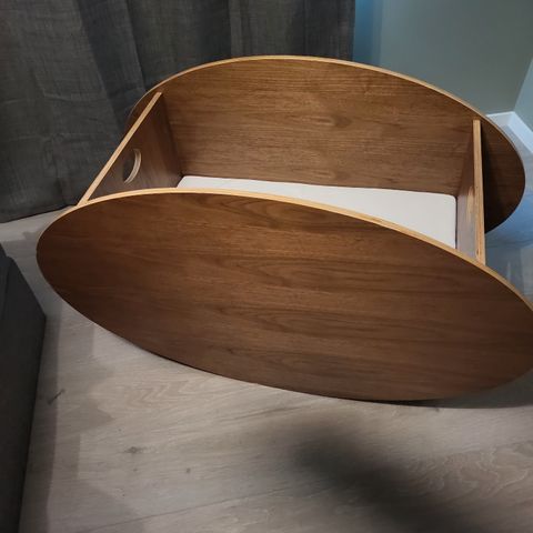 So-ro vugge i tre med brun finish. Vuggen har buede sideplater som gir en rolig gyngebevegelse, og ovale utskjæringer i gavlene som fungerer som håndtak for enkel flytting. Passer til spedbarn og små barn i den første tiden. Vuggen kan brukes med babynest eller madrass etter eget ønske. Egner seg til bruk på soverom eller andre rom der barnet skal hvile.
