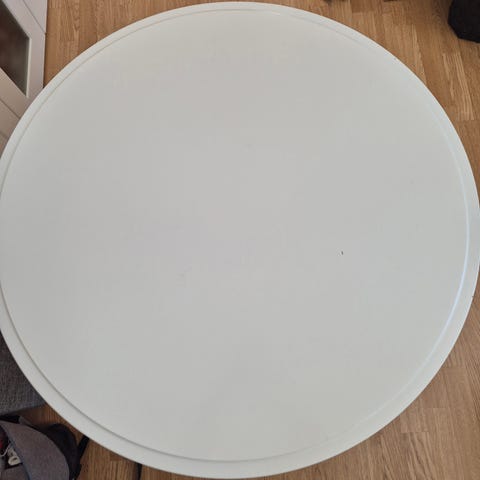 Bordplaten er fin uten noen betydelige merker, har brukt bordduk hele tiden. På kantene så er det merker, se bilder.