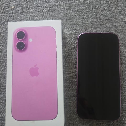 Helt ny, kun åpnet eske. Apple iPhone 16 pluss mobiltelefon med 256 GB lagringsplass i rosa farge. Lærdeksel med kortholder å innsiden og utsiden følger med.