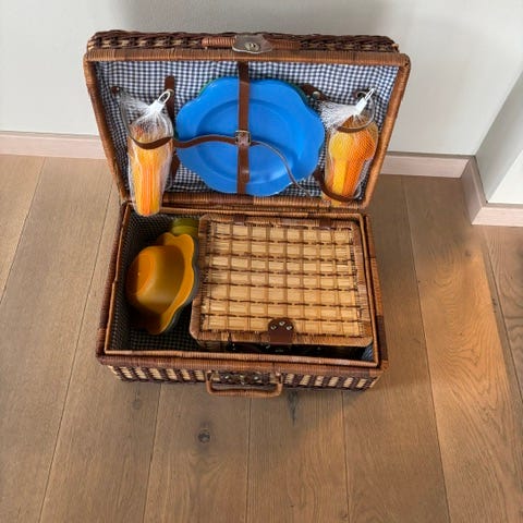 Sjarmerende piknikkurv med innhold. Reservert!