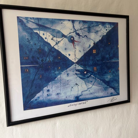 Profesjonelt innrammet på rammeverksted, og i god stand uten skader.
