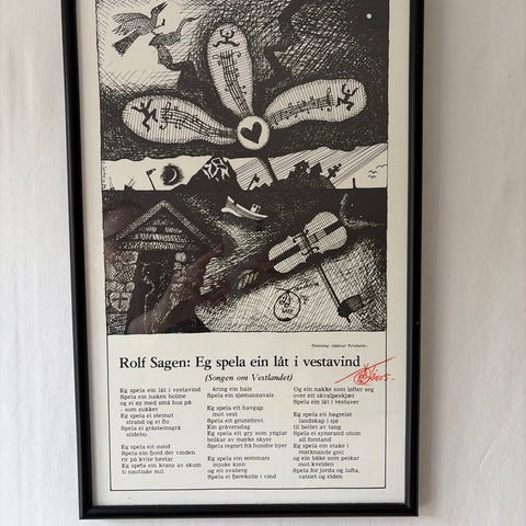 Plakaten er signert av Torsheim, med en håndskrevet hilsen fra kunstneren – et personlig preg som gjør akkurat denne plakaten litt mer unik enn standardutgavene.