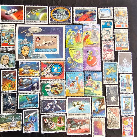 Samling av vintage samlekort med romfartstema